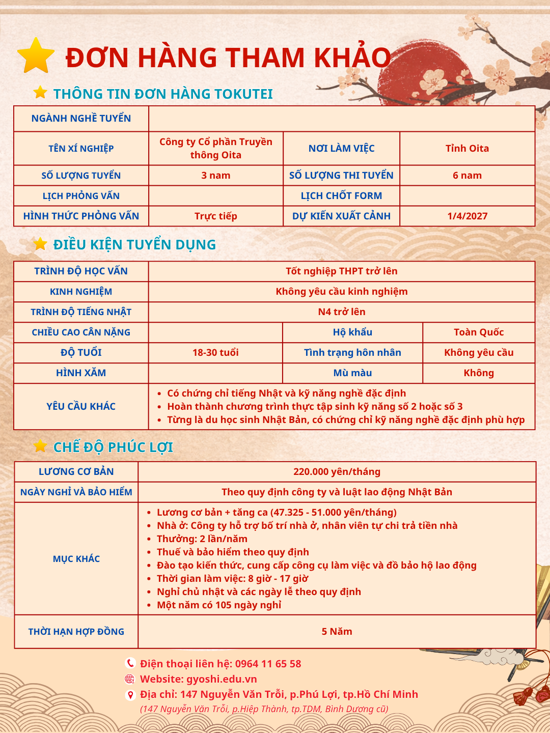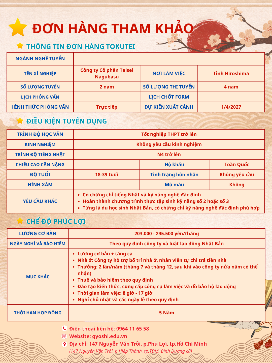 Đây là cơ hội tốt để vừa nâng cao tay nghề, vừa tích lũy tài chính và trải nghiệm môi trường làm việc quốc tế. Nếu bạn quan tâm, đừng bỏ lỡ!